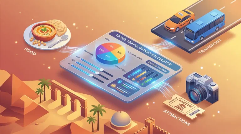 Wondering how much a trip to Israel costs? Use our free Israel Travel Budget Estimator to calculate your daily expenses for food, transport, and attractions.